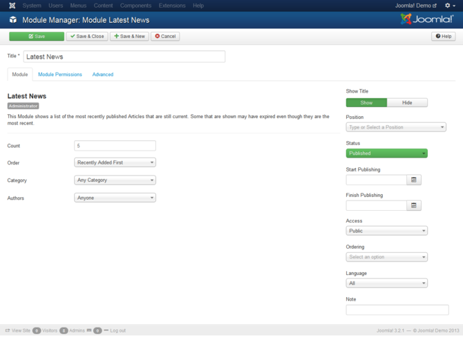 - Category: (Any Category/Sample Data-Articles/Joomla!/Extensions/Components/Modules/Content Modules/...). Select Articles from a specific Category or set of Categories.