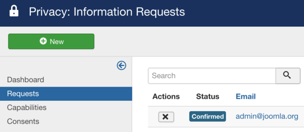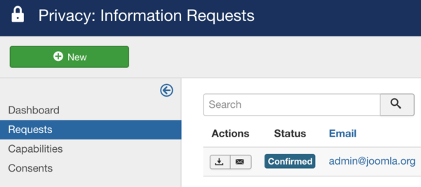 Registered users may submit information requests for their accounts on the website. It is suggested to create a Privacy → Create Request menu item to link to the information request form. When submitting an information request, the user must provide: