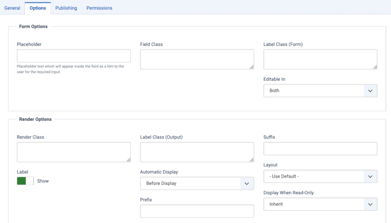 - Label. Show the label when the field renders.